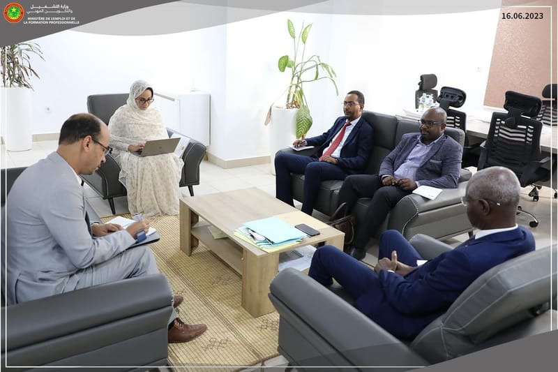 استقبل معالي وزير التشغيل والتكوين المهني السيد نيانغ مامودو، صباح اليوم رئيس الوفد المشرف على مشروع قابلية تشغيل الشباب والتكامل الاجتماعي والاقتصادي التابع للبنك الأفريقي للتنمية، السيد مؤمن سيساو بمناسبة انتهاء مهمة الإشراف.