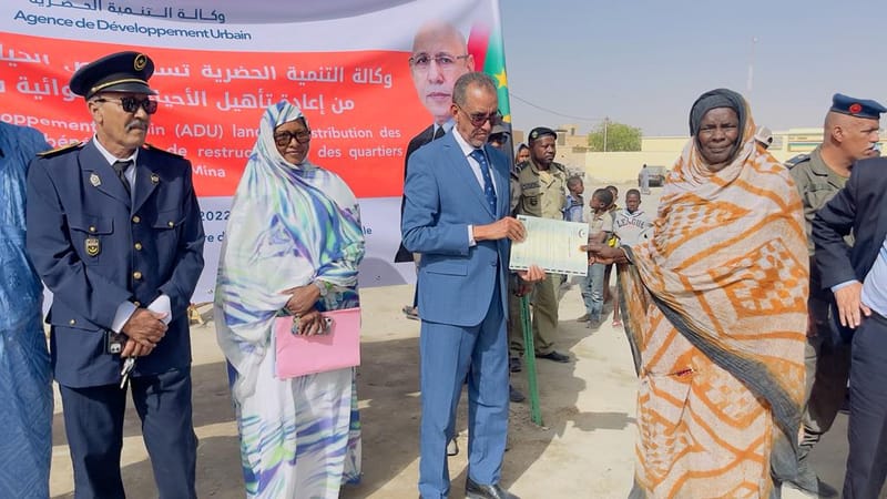 أشرفت السيدة المديرة العامة لوكالة التنمية الحضرية السيدة ميمونة منت أحمد سالم صباح اليوم 28 نوفمبر من مقاطعة الميناء على عملية توزيع وثائق الملكية “رخص الحيازة” على المستفيدين من برنامج إعادة تأهيل الأحياء العشوائية بالمقاطعة.